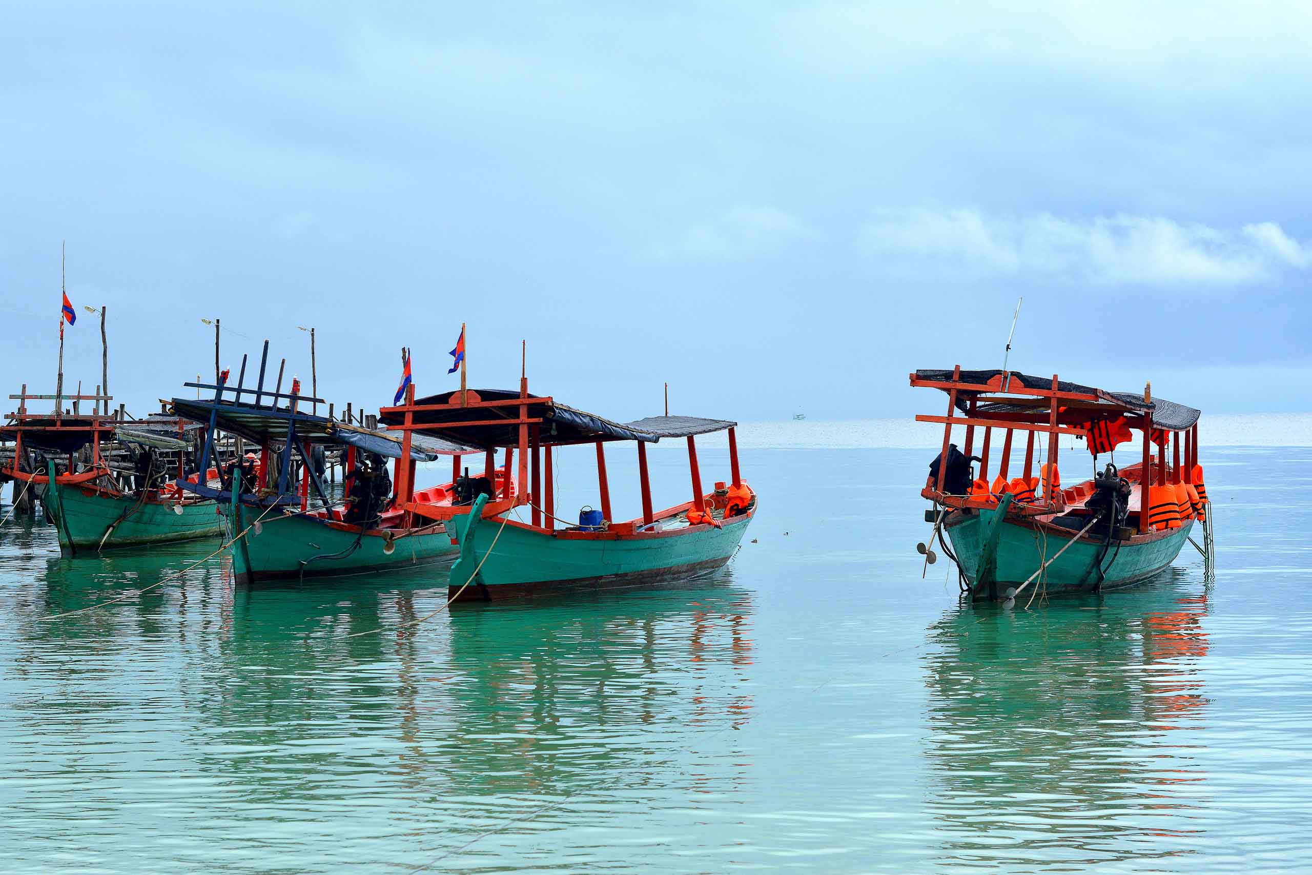 Koh Rong, and specially Koh Rong Sanloem, its little sister, still preserve a lot of virgin beaches without touristic intrusions. You can camp in white sand beaches, in front of the turquoise sea, far away from the noisy dancehall music from the pubs around town. The planning of the Royal Group, a conglomerate of businesses that invest in diverse sectors of Cambodia’s economy, are to fill these wonderful stranded beaches with big resorts and busy nightlife clubs.